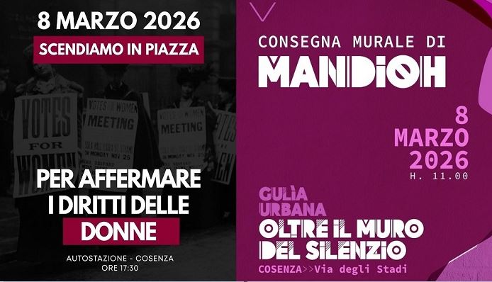 Nel pomeriggio, alle 17,00, ci sarà la manifestazione che partirà dall’autostazione: “manifestare a Cosenza in una piazza pericolosa per tutti, ma soprattutto per le donne, é atto politico che vuole mandare alla città, alle istituzioni e alla comunità un messaggio chiaro di libertà, ribadendo il diritto di muoversi e attraversare spazi in ogni ora del giorno”, afferma il CAV concludendo con un appello: “L’otto marzo manifestiamo e scioperiamo contro la guerra, massima espressione della violenza patriarcale, diciamo NO al DDL Bongiorno!”.