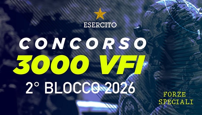 Tra le opportunità attualmente aperte, è possibile per i giovani tra i 18 e i 24 anni partecipare al concorso per 3.000 Volontari in Ferma Iniziale (VFI), con scadenza il 27 febbraio 2026. I bandi e tutte le informazioni di dettaglio sono consultabili sul portale ufficiale dell’Esercito Italiano www.esercito.difesa.it