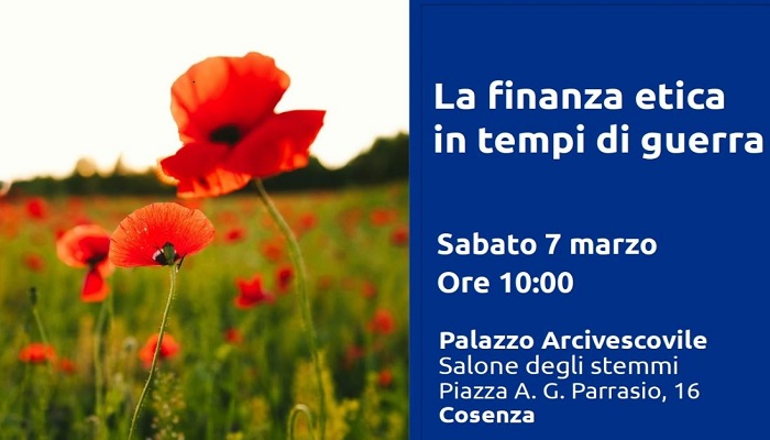 Di fronte a una realtà internazionale sempre più segnata da tensioni e conflitti, si pone con urgenza la domanda cruciale: come può il denaro, strumento pervasivo dell'economia globale, essere orientato per disinnescare le logiche di guerra e divenire un autentico strumento di pace e sviluppo umano? Una risposta a questo interrogativo fondamentale sarà discussa sabato 7 marzo alle ore 10:00, presso la suggestiva cornice del Salone degli Stemmi del Palazzo Arcivescovile, in Piazza Parrasio, Cosenza. Il convegno, intitolato “Finanza in tempi di guerra”, è un'iniziativa congiunta promossa con forte convinzione dai soci del GIT Calabria Centro Nord di Banca Etica, dalla MAG delle Calabrie, dall'Arcidiocesi di Cosenza-Bisignano e dall'Ufficio Diocesano per la Pastorale dei Problemi sociali e del lavoro.
